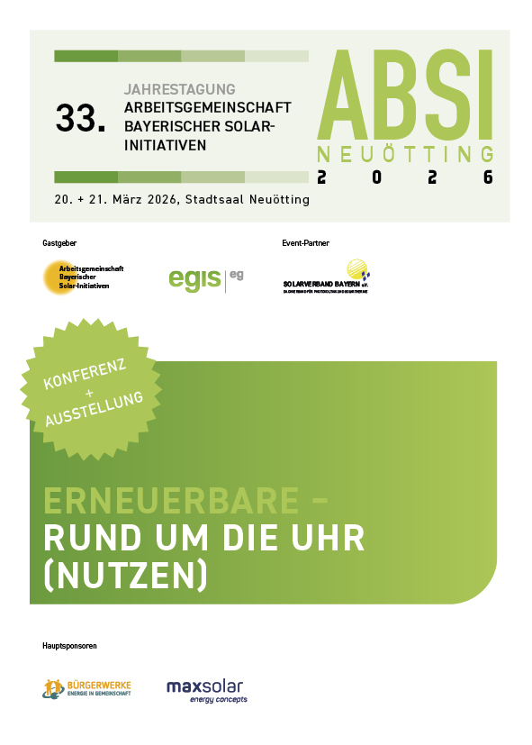 Im Rahmen der 31. Jahrestagung der Arbeitsgemeinschaft Bayerischer Solar-Initiativen (ABSI) gibt es ein