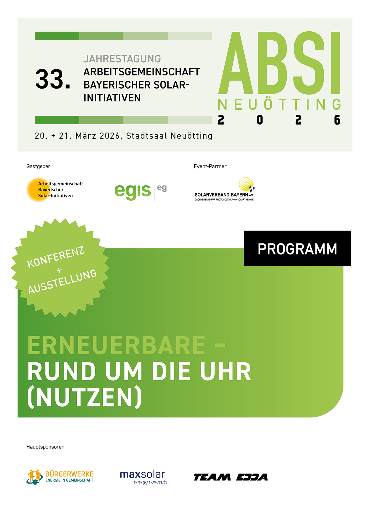 33. Jahrestagung der Arbeitsgemeinschaft Bayerischer Solar-Initiativen (ABSI) am 20. und 21. März 2026 in Neuötting